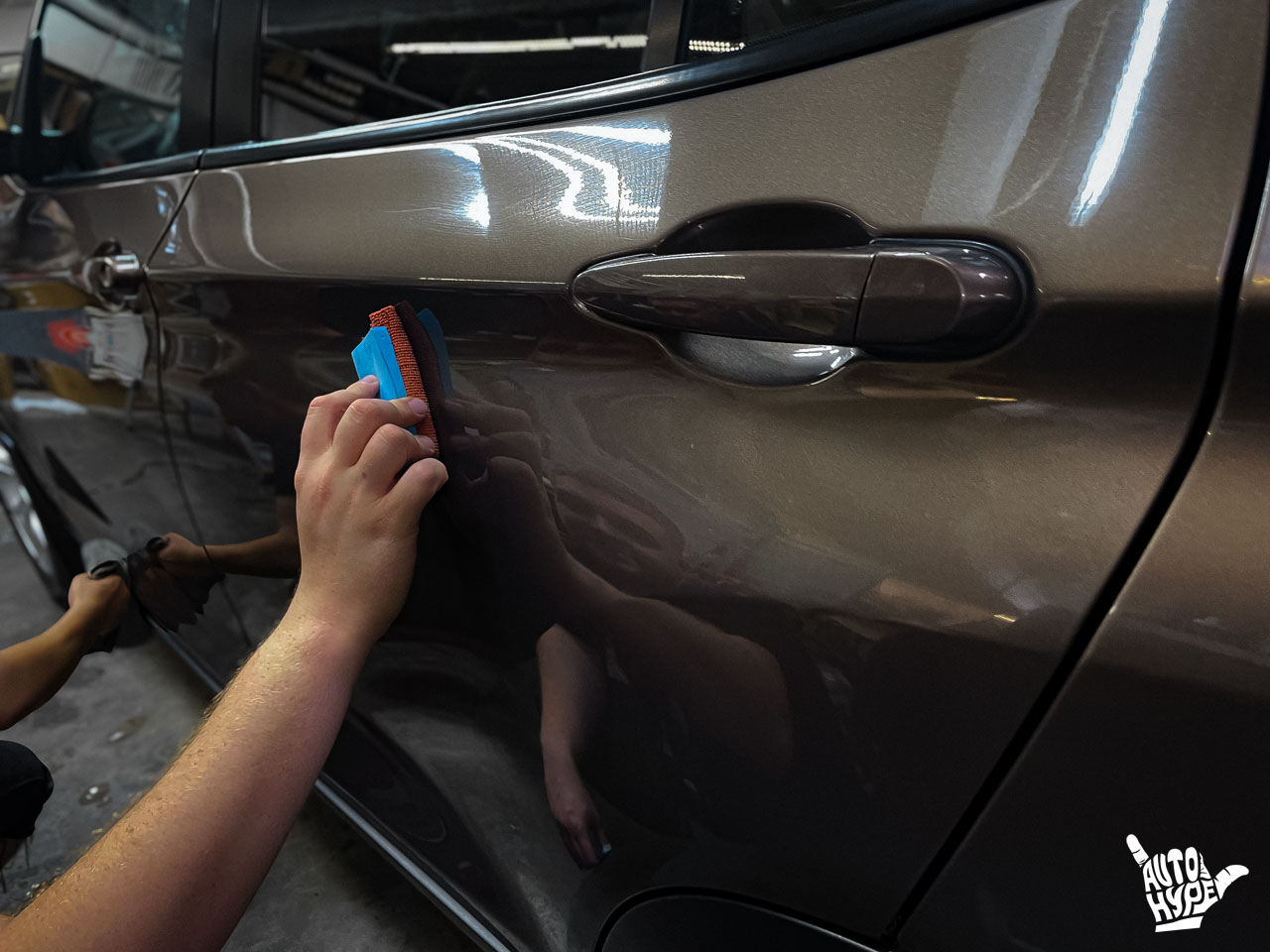 В завершение выполнена полировка кузова а после нее – 2-х фазное нанесение керамического покрытия премиум-класса корейского производителя GYEON. Керамика не только защищает автомобиль от агрессивной химии и делает его цвет более насыщенным, но и придает поверхностям дополнительные грязеотталкивающие свойства.