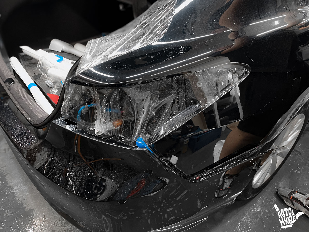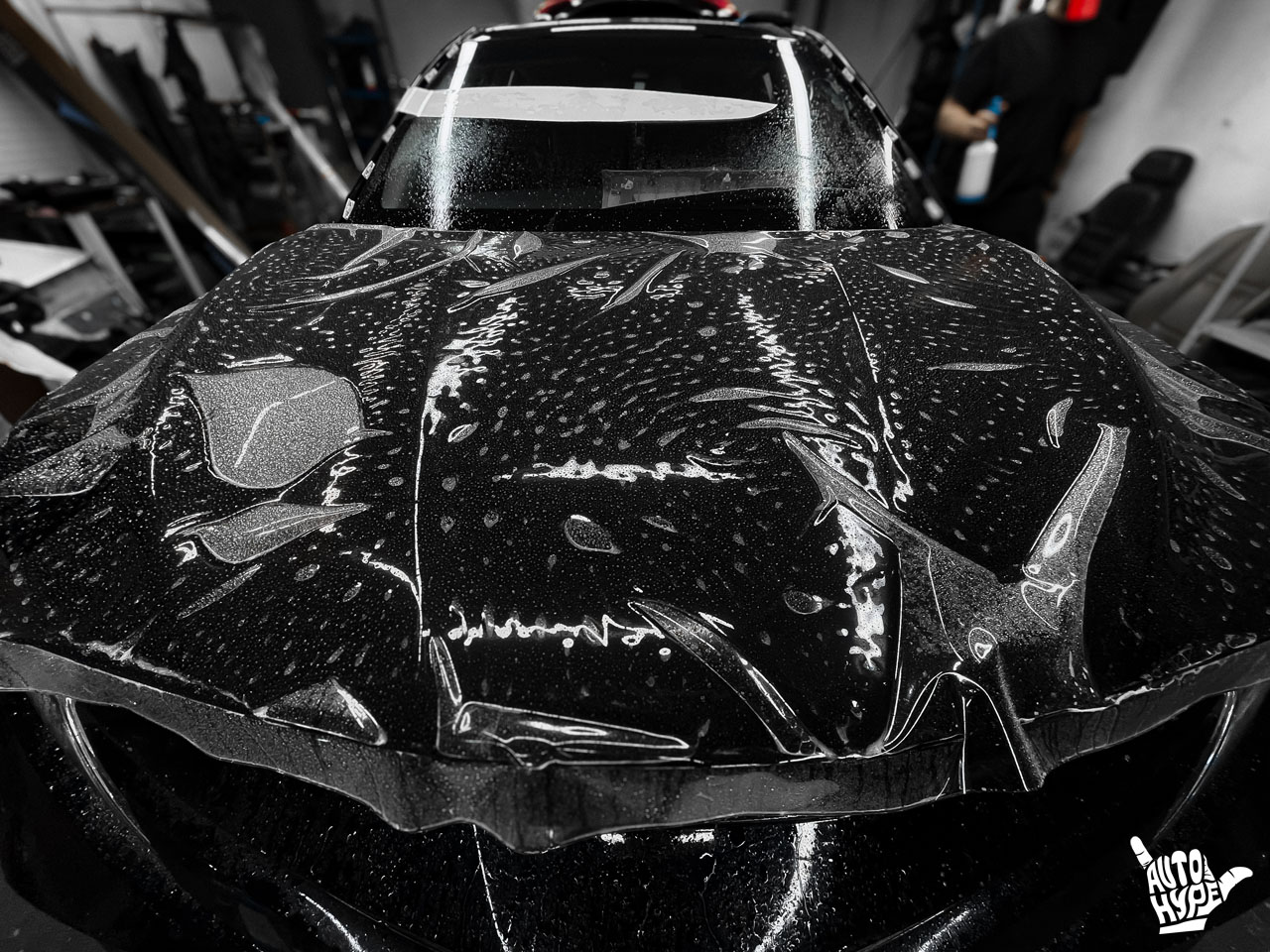 Для защиты от агрессивной химии и царапин кузов оклеен глянцевой полиуретановой пленкой. Для идеального результата мы предварительно выполнили восстановительную полировку и устранили вмятины на металле по PDR технологии (без покраски). Также защитная пленка нанесена на лобовое стекло.