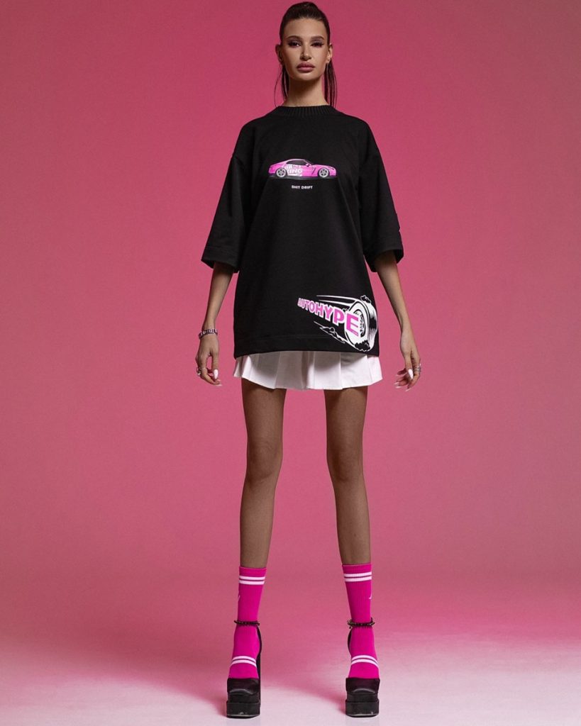Авторский крой футболки, адаптированный под два размера: S-M и M-L, поддерживает философию оверсайз изделий, но позволяет сделать выбор в пользу наиболее подходящего для себя варианта: длина рукава, длина изделия и объем — все это было тщательным образом рассчитано и протестировано, дабы создать идеальные пропорции.