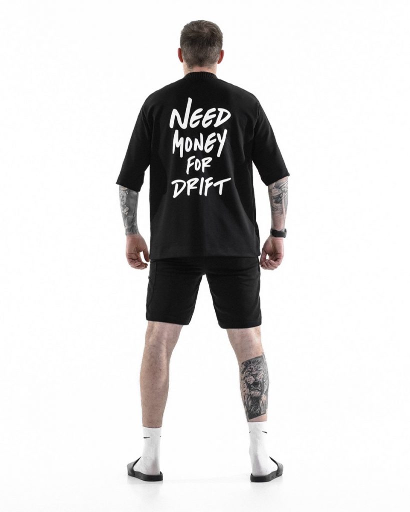 Классическая футболка «Drift» (линейка «NEED MONEY») в глубоком черном цвете обязательно станет фаворитом среди многих в вашем гардеробе: плотный и приятный к телу материал, не оставляющий заломов; мягкий, но в то же время прекрасно поддерживающий свою форму вязаный ворот; стильный дизайн, разработанный индивидуально для тюнинг-ателье «АвтоХайп» и брендинг из экокожи ручной работы.