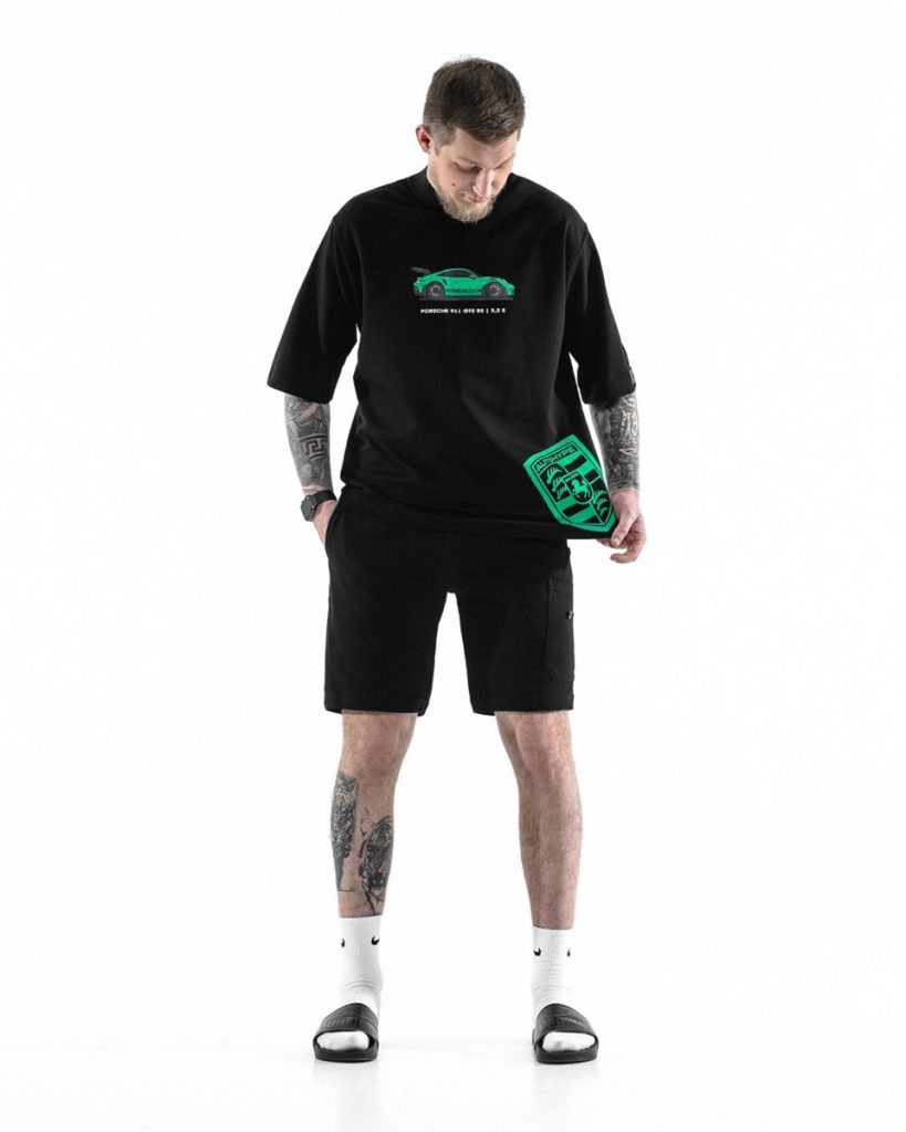 Классическая футболка для поклонников Porsche обязательно станет фаворитом среди многих в вашем гардеробе: плотный и приятный к телу материал, не оставляющий заломов; мягкий, но в то же время прекрасно поддерживающий свою форму вязаный ворот; стильный дизайн, разработанный индивидуально для тюнинг-ателье «АвтоХайп» и брендинг из экокожи ручной работы. Футболка выполнена в глубоком черном цвете.