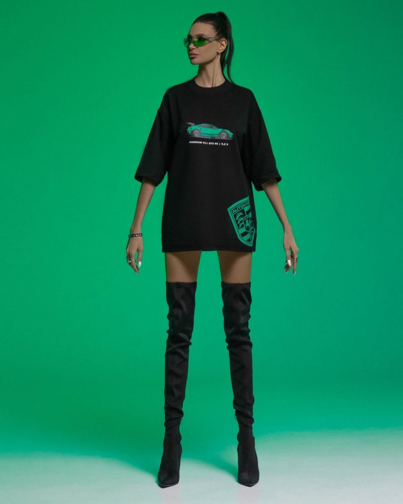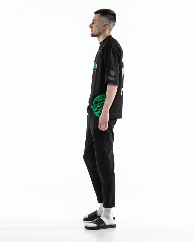 Авторский крой футболки, адаптированный под два размера: S-M и M-L, поддерживает философию оверсайз изделий, но позволяет сделать выбор в пользу наиболее подходящего для себя варианта: длина рукава, длина изделия и объем — все это было тщательным образом рассчитано и протестировано, дабы создать идеальные пропорции.