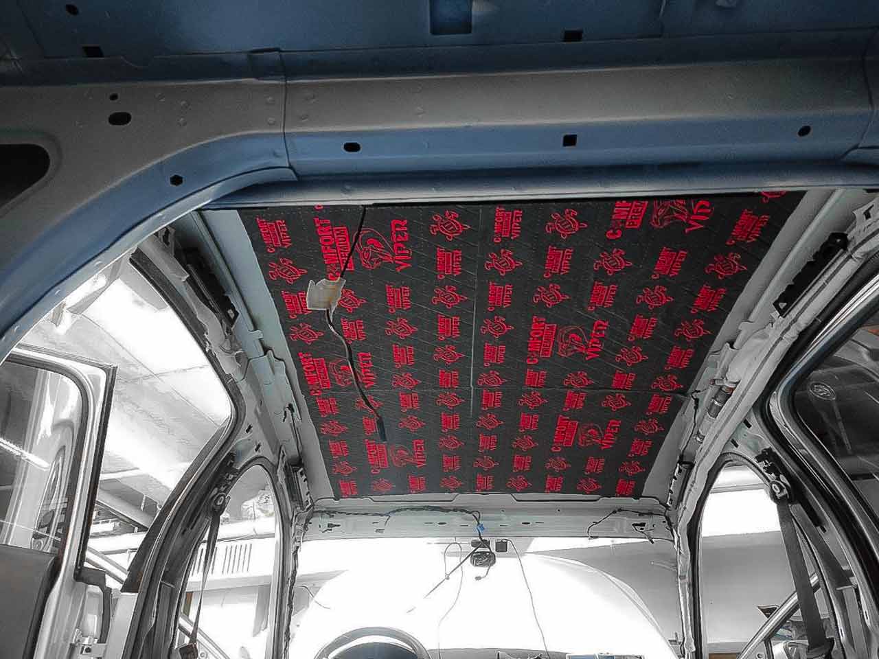 — Проклейку поверхности крыши вибродемпфером – материалом для поглощения вибраций;